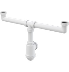 A448P Сифон для сдвоенной мойки с накидными гайками 6/4" и подводкой